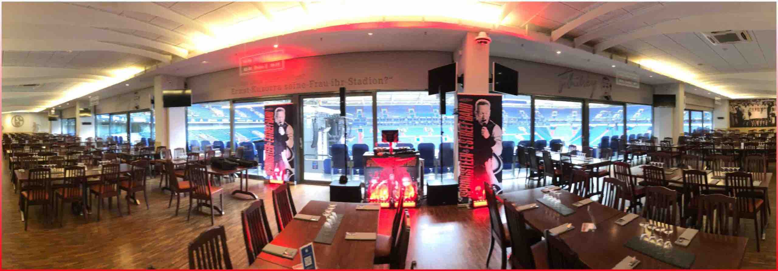 Wie bei vielen unserer Auftrittsorte gewohnt, hatten wir wieder das Privileg, in der Tiefgarage des Stadions zu parken – ein kleiner, aber feiner Vorteil, der den Aufbau erheblich erleichtert.