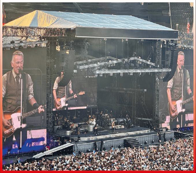 Diesmal nutzte ich die Gelegenheit, das Konzert live zu erleben. Ich bekam ein Einlassticket, machte mich auf den Weg in den Front-of-Stage-Bereich, holte mir noch ein Getränk und ließ die Atmosphäre auf mich wirken. Als Bruce Springsteen die Worte sprach: “Liebt euch, liebt eure Mitmenschen und den Planeten, auf dem ihr lebt,” war das ein Gänsehautmoment.