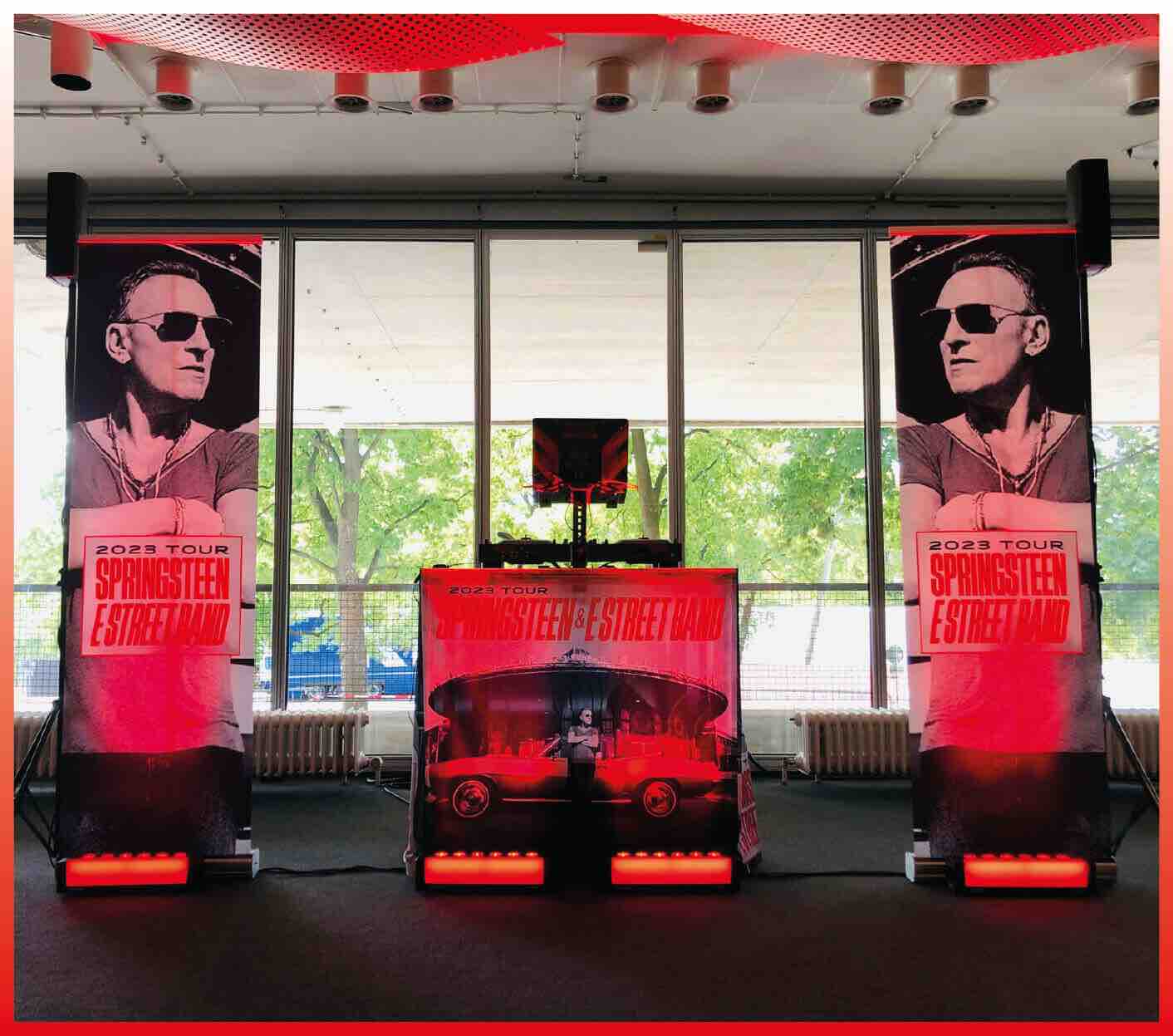 Auch 2025 darf ich wieder Bruce Springsteen und die Gäste der offiziellen Pre-Konzert-VIP-Partys als DJ begleiten – ein echtes Privileg und jedes Mal ein besonderes Erlebnis. Der erste Termin in diesem Jahr: das Olympiastadion Berlin, eine Location mit absoluter Gänsehaut-Garantie. Umso mehr freue ich mich, hier bereits zum fünften Mal eine exklusive VIP-Pre-Show als DJ gestalten zu dürfen. Mit meinen extra eingepackten AKKU-Uplights konnte ich die beeindruckende Architektur, insbesondere die zahlreichen Säulen und die rund acht Meter hohe Decke, stimmungsvoll in Szene setzen.