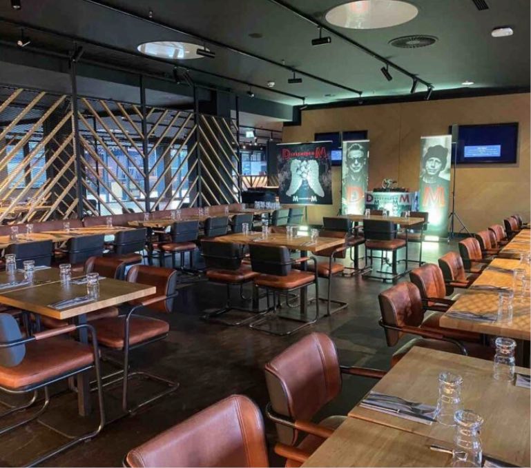 Sobald die Türen geöffnet wurden, füllte sich der Club in Windeseile. Ich legte entspannte Jazz-Versionen von Depeche Mode auf – doch das kam bei der Band und dem Management nicht gut an. Der Tour-Manager kam freundlich auf mich zu und bat mich, auf 80s-Musik umzusteigen, aber bitte kein Depeche Mode. Kein Problem! Während die Gäste das Buffet genossen, dröhnten von der Leipziger Festwiese bereits die ersten Klänge der Vorband herüber. Die VIP-Partys sind Pre-Partys, keine Aftershow-Partys – das bedeutet, nach dem Warm-up geht’s für die Gäste direkt zum Konzert.
