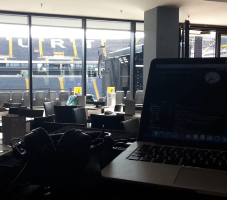 Früh vor Ort nutzte ich die Zeit für einen Rundgang durch das Stadion – ein Ritual, das ich liebe. Ich wurde sogar von meiner Chefin zum Essen in der Crewküche eingeladen, was mir die Gelegenheit gab, mich mit dem Team auszutauschen. Gut gestärkt begann ich, mein Equipment zu installieren. Einer der Barangestellten brachte mir einen Kaffee – ein kleines, aber schönes Detail, das mir zeigt, wie sehr man mich schätzt. Als Dank spielte ich ihm seinen gewünschten Bruce-Springsteen-Song.