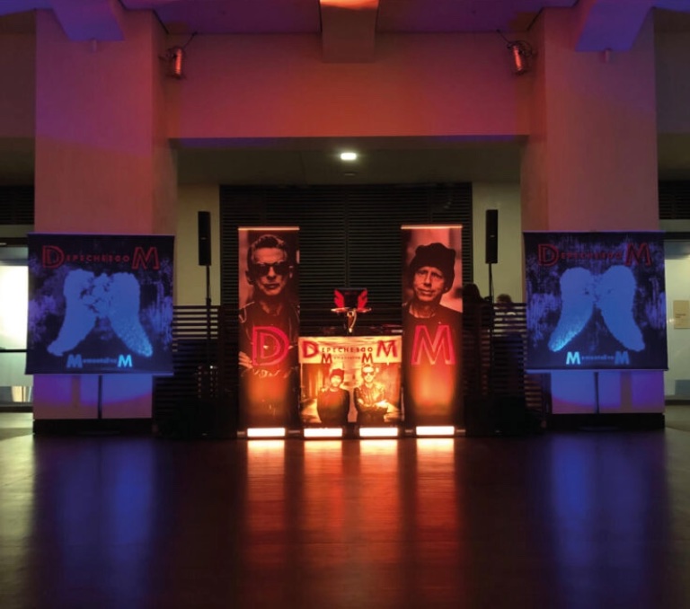 Die erste VIP-Party in Leipzig fand im Stage Club statt, direkt gegenüber der Festwiese – eine Location, die ich später auch für Guns’n Roses 2018 und Depeche Mode 2023 erneut als VIP-DJ bespielen durfte. Ich suchte im Netz nach Bildern, um herauszufinden, welche Technik ich mitnehmen musste. Vor Ort fiel mir sofort auf: Der Club war fast vollständig mit schwarzen Molton-Vorhängen abgehängt – gut für die Akustik. Neugierig schob ich einen der Vorhänge beiseite und entdeckte dahinter eine Sporthalle sowie einen Bereich für Interviews. Okay, Depeche Mode is in the house.
