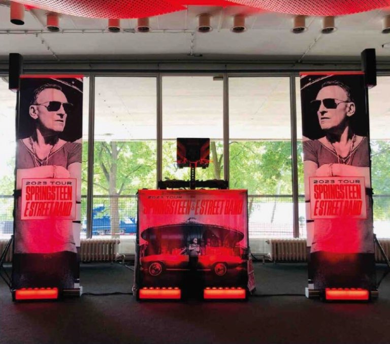 Auch 2025 darf ich wieder Bruce Springsteen und die Gäste der offiziellen Pre-Konzert-VIP-Partys als DJ begleiten – ein echtes Privileg und jedes Mal ein besonderes Erlebnis. Der erste Termin in diesem Jahr: das Olympiastadion Berlin, eine Location mit absoluter Gänsehaut-Garantie. Umso mehr freue ich mich, hier bereits zum fünften Mal eine exklusive VIP-Pre-Show als DJ gestalten zu dürfen. Mit meinen extra eingepackten AKKU-Uplights konnte ich die beeindruckende Architektur, insbesondere die zahlreichen Säulen und die rund acht Meter hohe Decke, stimmungsvoll in Szene setzen.