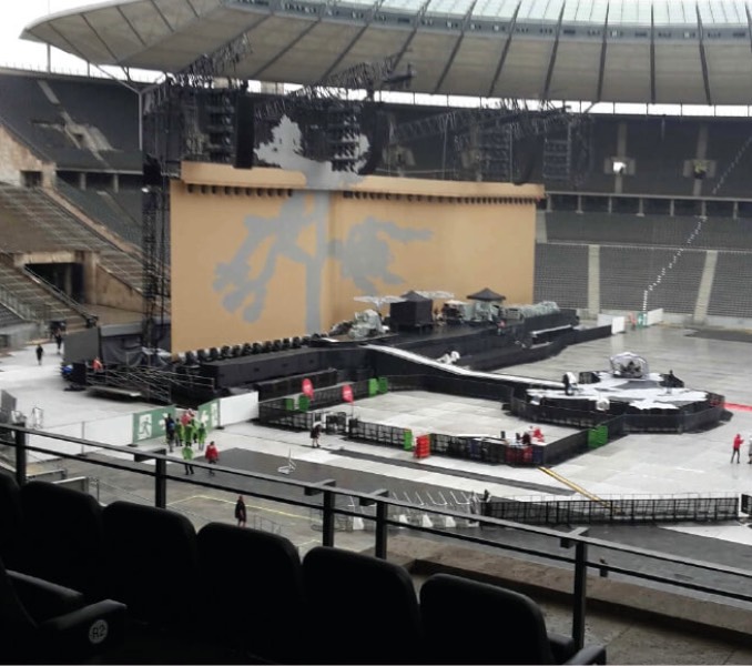 Das legendäre “The Joshua Tree”-Album von U2 feierte sein 40-jähriges Jubiläum, und die Band ging auf eine exklusive Jubiläumstour. Berlin war der einzige Stopp in Deutschland – und ich hatte die Ehre, die dazugehörige VIP-Party als DJ zu begleiten. Ich hatte U2 bereits live gesehen, doch diese Show war etwas Besonderes. Die überdimensionale Full-HD-LED-Leinwand überforderte fast die 70.000 Zuschauer. Während die Bühne anfangs unscheinbar wirkte, erstrahlte sie um 21:00 Uhr in einem tiefen, warmen Rot und verwandelte das Olympiastadion in ein riesiges Open-Air-Kino.