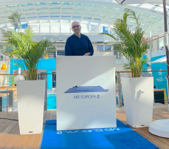 Schon lange war es mein Wunsch, als DJ mit einem Schiff die Ozeane zu befahren. Durch meine Referenzen der zahlreichen VIP-Partys war ich für die Agentur sofort von Interesse. Den Tipp mit der Booking-Agentur bekam ich von einem befreundeten DJ, der schon öfter mit der “Mein Schiff” als DJ gefahren ist. Durch ein ansprechendes Bewerbungsschreiben, aus dem hervorging, dass ich wusste, worum es meinen Auftraggebern geht, kam es zu einem klärenden Telefonat. Kurz darauf erhielt ich bereits den Vertrag und einen DJ-Reise-Katalog. Wie sich herausstellte, war diese Agentur für die MS Europa 2 zuständig. Ein Luxusschiff mit 5½ Sternen, nur 500 Passagieren und 370 Crew-Mitgliedern – das macht das Reisen zu einer besonders intimen Erfahrung.