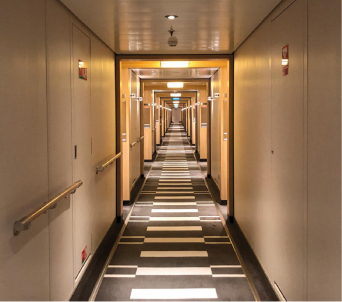 An Bord angekommen, wurde mir eine kleine Einzelkabine unter der Wasserkante zugewiesen. Meine Kabine, die ich alleine nutzen durfte, war klein, praktisch und mit allem ausgestattet, was ich brauchte: ein Bett, ein Tisch, Klimaanlage, TV, Kühlschrank, Dusche und WC. Ohne “Sterni”, den netten Herren, hätte ich am Anfang wohl den Überblick verloren. Weder wusste ich, wo ich als Erstes hin sollte, noch, wie ich am schnellsten einen Ort auf dem Schiff fand. Denn kaum jemand gibt dir Infos – alles musst du selbst herausfinden. Dafür gibt es Infotafeln, die in der Nähe der Crewmesse und beim Crewpurser aufgehängt sind. Dort steht alles, was wichtig ist: Crew-Drills und sonstige wichtige Termine.